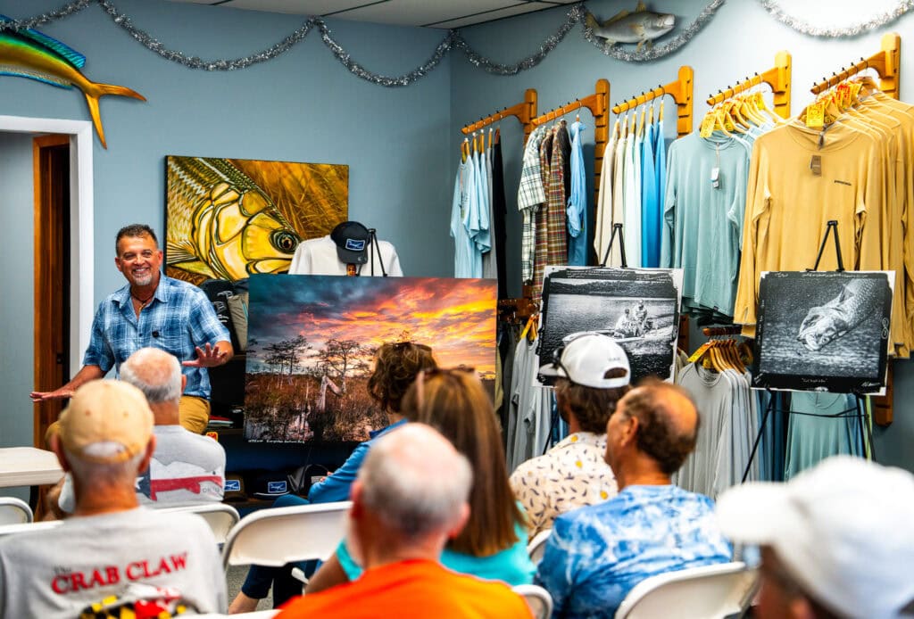 He broke down what makes the Flamingo fishery so unique: a mix of flats, mangrove shorelines, and shifting water movement that can completely change with tide, wind, light, and water clarity. Mark stressed paying attention to the small tells—how bait is behaving, how fish react to pressure, and what “fishy water” looks like—then making smart decisions about when to slow down, when to move, and how to approach fish in skinny water without rushing the shot.